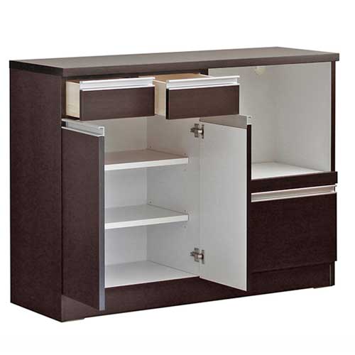 面倒な組立不要!安心の国産商品! 炊飯器等の家電もまとめておしゃれに収納できる商品です。 ナチュラルな印象でキッチンやダイニングを明るく見せます。 スライド棚付きのオープン部には1500Wのコンセント付きです。 |