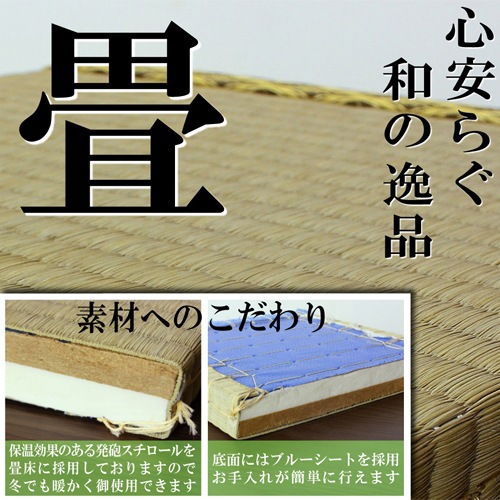 本体主材:プリント化粧板、10W白熱灯 畳主材:本い草、インシュレーションボード、防湿防虫加工 ●日本製 |