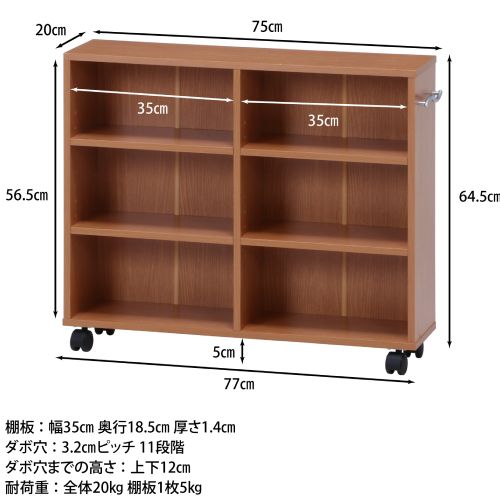| サイズ | 外寸:幅770×奥行200×高さ645mm 耐荷重(全体):20kg 耐荷重(棚板):5kg |
