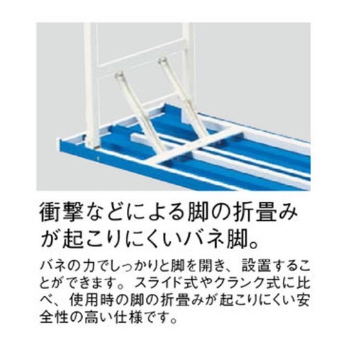 | 安全性の高いバネ脚仕様! 収納に便利な折りたたみできるカラーベンチです。 バネの力でしっかりと脚を開き、設置することができます。 スライド式やクランク式に比べ、使用時の脚の折りたたみが起こりにくい安全性の高い仕様です。 |