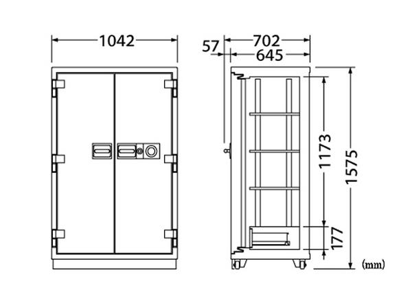 | 商品名 | 耐火金庫 アラーム付き 高さ1575mm 質量510kg 内容積526L