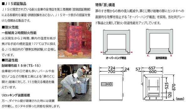 ●JIS認証製品 JISに規定されている耐火金庫の全項目を第三者機関による客観的な審査・評価試験を行い、JISマーク表示の認証を受けた信頼有る製品です。 |