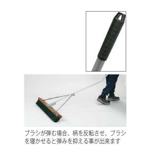 補強金具でブラッシング効果アップ! テニスコートの整備に最適なコートブラシです。 砂入人工芝(オムニコート)での使用も可能です。 ブラシが弾む場合、柄を反転させブラシを寝かせると弾みを抑えることができます。 教育施設や運動施設、グラウンドで活躍しています。 |