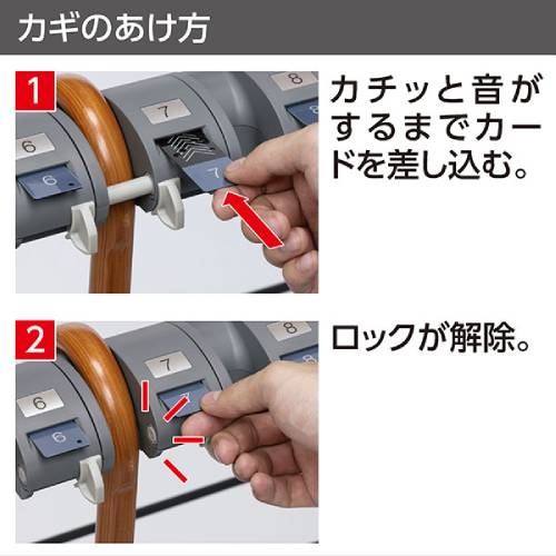 本体:スチール 粉体塗装 カードキー:塩化ビニール 受皿:ポリプロピレン ●意匠登録済 ●特許登録済 ●中華民国(台湾)特許登録済 |