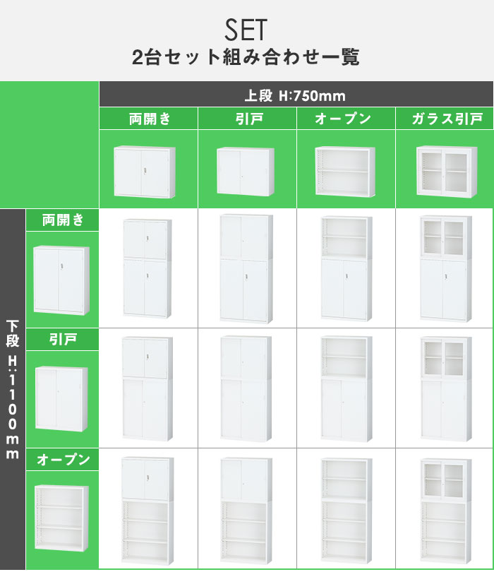 | 両開き書庫(2段) | SALZ-H32S1 | SALZ-H32S3 | SALZ-H32S2 |