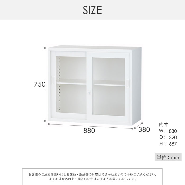 ガラスキャビネット 引戸書庫 鍵付き 幅880×奥行380×高さ750mm ALZ-G32