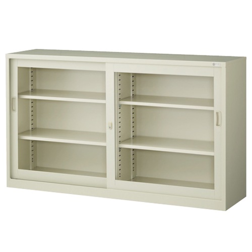 ガラスキャビネット 引戸書庫 鍵付き 幅1515×奥行400×高さ880mm G-53SG