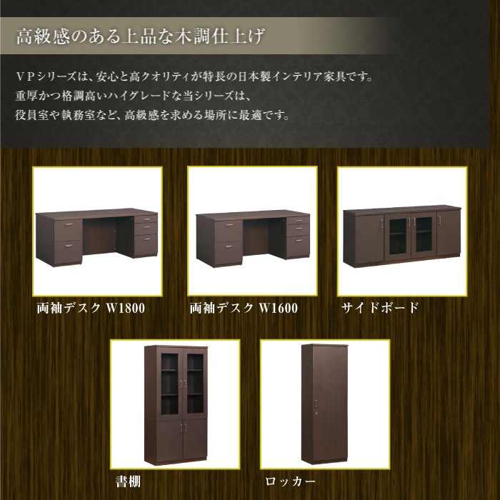 | 落ち着いた雰囲気を醸し出す高級デスク。 高級感たっぷりで、役員様用の家具として最適です。 シリーズ商品多数取り扱っております。 |