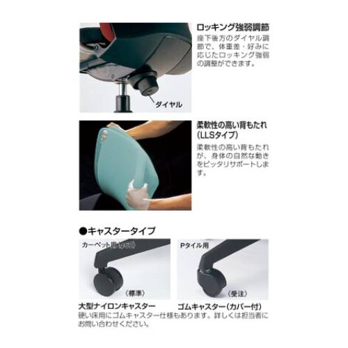 ●機構 強弱調節機構付きロッキング、ガス圧上下調節機構 ●グリーン購入法適合商品 社団法人日本オフィス家具協会(JOIFA)が認めた、地球環境に非常に優しい商品です。 |