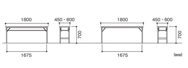 幅1800×奥行450×高さ700mm 脚間内寸:幅1675mm 重量:12.8kg |