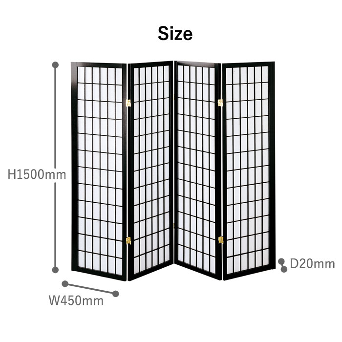 外寸:幅450×奥行20×高さ1500mm×4枚 折り畳み時:幅450×高さ1500×厚さ85mm |