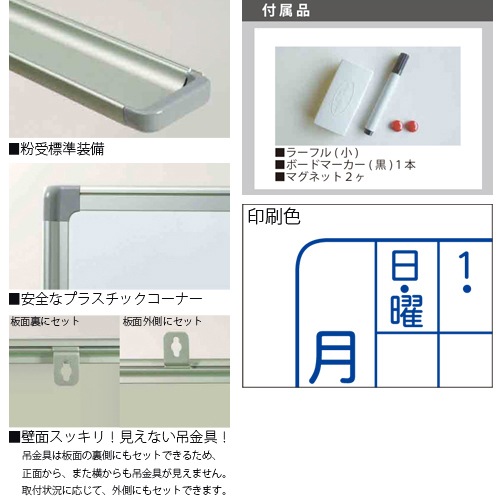 | 商品名 | ホワイトボード 壁掛け式 月予定表(横書き) 幅910×高さ610mm