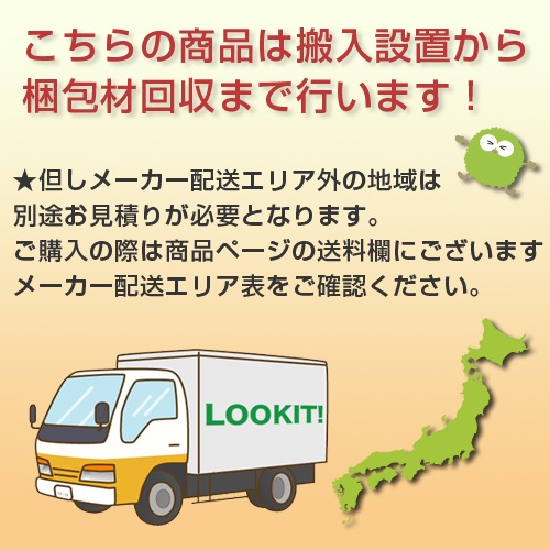 送料無料 (メーカー配送エリア内の場合) ※搬入設置、梱包材回収も無料で行います。 ※軒先渡しで搬入設置、梱包材回収ができない地域がありますので配送エリア表をご確認下さい。 ▼ ▼ ▼ ご購入の前に必ずエリア表をご確認下さい ▼ ▼ ▼