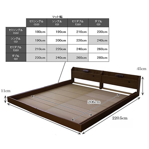 - ロングフロアベッド ワイドキング230 幅240cm マットレス付 ベッド 268WK230-Long