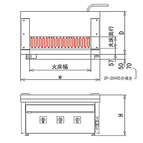 電気グリラー 卓上型 幅610×奥行410×高さ390mm グリル 焼き物器 3P-204KC
