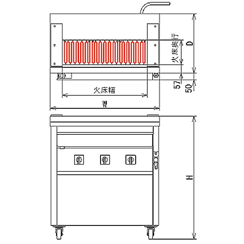 | 商品名 | 電気グリラー 床置型 火床寸法:幅900×奥行150mm |