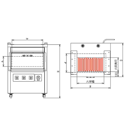| 商品名 | 電気グリラー オーブン付 火床:幅680×奥行270mm |