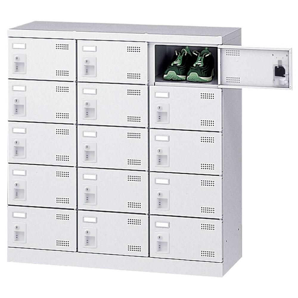 - シューズロッカー 15人用 3列5段 南京錠 日本製 SLBW-M15-N2