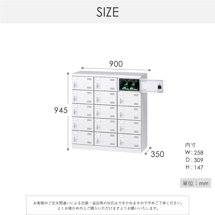 | 商品名 | 15人用シューズロッカー 南京錠 3列5段 |