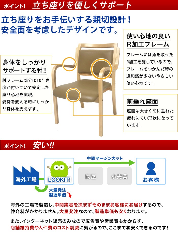 - ダイニングチェア 木製 介護 椅子 肘付 ANG-1H