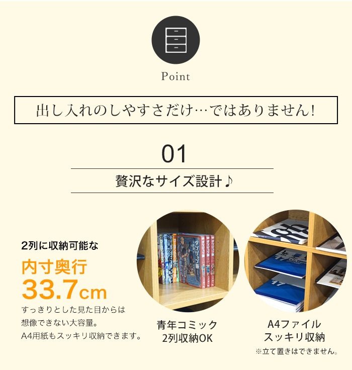 | サイズ | 外寸:幅560×奥行350×高さ900mm 内寸(1段):幅255×奥行337×高さ255mm |
