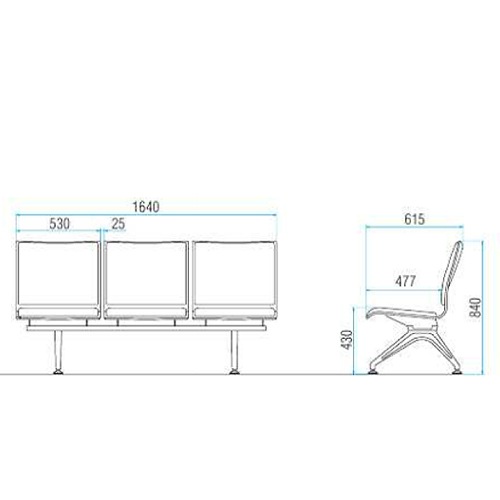 - ロビーチェア 長椅子 背もたれ付き 幅1640mm LM-3