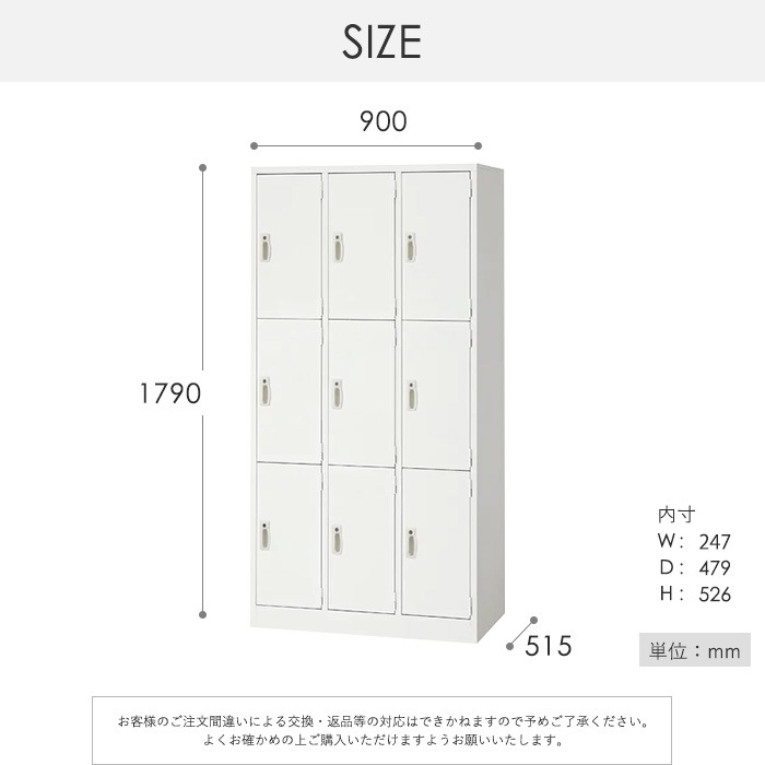 | 商品名 | 9人用ロッカー 3列3段 鍵付き ホワイト |