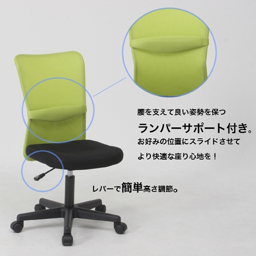 - メッシュチェア 肘なし 椅子 キャスター付き パソコンチェア 50653
