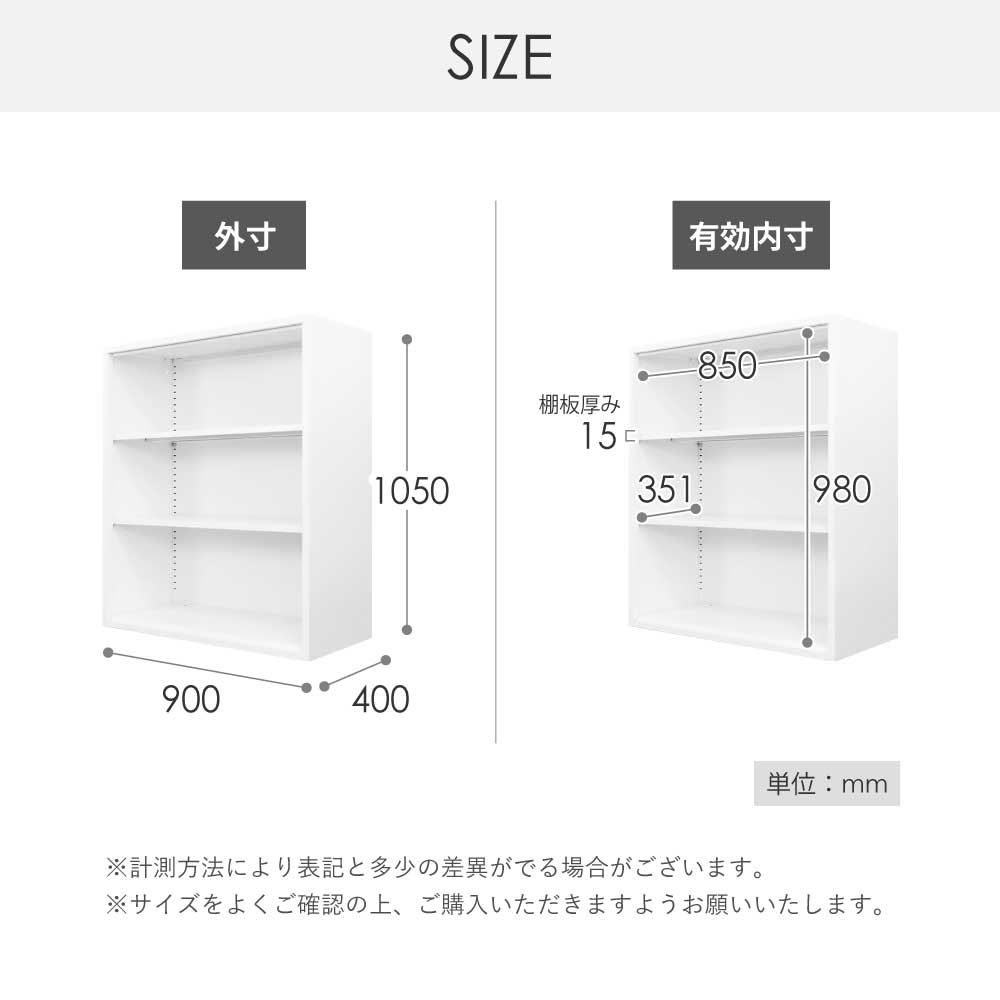 ●オープン書庫 外寸:幅900×奥行400×高さ1050mm 重量:約20kg 梱包重量:約23kg 耐荷重:約35kg※棚板1枚あたり ●両開き書庫 外寸:幅900×奥行400×高さ1050mm 重量:約27kg 梱包重量:約31kg 耐荷重:約35kg※棚板1枚あたり |