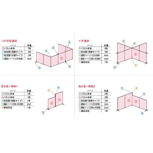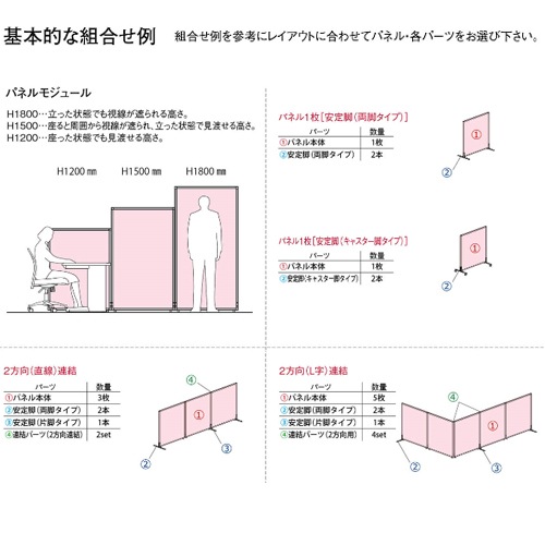 | 抗ウイルスパーテーション! パネル表面に付着したウイルスや細菌を激減させる特殊なメラミン板を採用したパーテーションです。 オプションの連結パーツを使用すると様々なレイアウトが可能です。 医療施設や教育施設の間仕切り、目隠しなどに活躍します。 | |