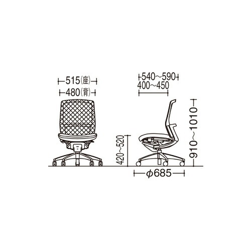 | サイズ | 外寸:幅515×奥行540~590×高さ910~1010(座面高420~520)mm 脚部:直径685mm |