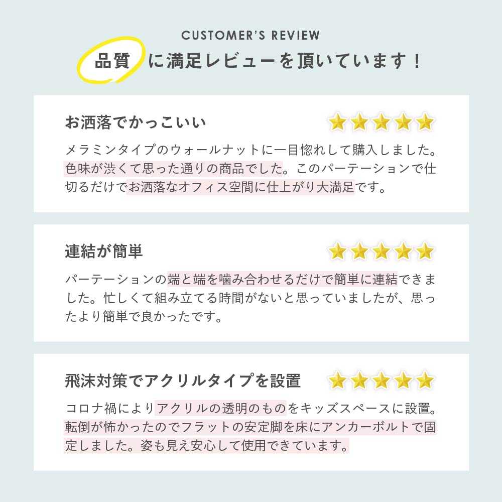 | 【GOOLOOシリーズ】 おしゃれなオフィスで働きたい!を叶えるGOOLOO(グールー)シリーズ。 自然と気分を上げて仕事に取り組めるような、快適で居心地のよいオフィス空間を作ります。 シリーズで揃えれば、一貫性のあるお洒落なオフィスデザインが完成します。 【GOOLOOパーテーション】 パーテーションのツメを噛み合わせるだけで連結ができる、扱いやすい簡単設計。 コーナーポール(別売)を使用すれば、L字・T字・十字・コの字・H字などさまざまなレイアウトが可能! 豊富なサイズ展開、パネルの中からお選び頂け、様々な利用シーンにジャストフィットする空間作りを実現します。 自社開発・監修だからこその品質と価格で優れた性能とコストパフォーマンスを両立! <メラミン> 明るく清潔感のある定番のホワイト、ブラックのフレームで重厚な雰囲気のウォールナット、上品な木目の美しいナチュラルからお選び頂けます。 汚れが気になる時は固く絞った濡れた布でお手入れでき、衛生的にお使いいただけるのも嬉しいポイント。 ※アルコールでのお手入れの際は、布にアルコールを少量染み込ませて拭き取ってください。 直接吹き付けてしまうと多量のアルコールが板面に付着し、表面に細かいヒビが入ったり白くなる恐れがあります。 | |