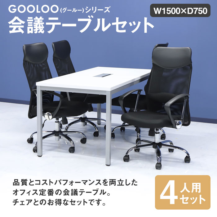 | 商品名 | GOOLOO 会議テーブル オフィスチェア【ハイバック 固定肘】4人用会議セット 幅1500mm |
