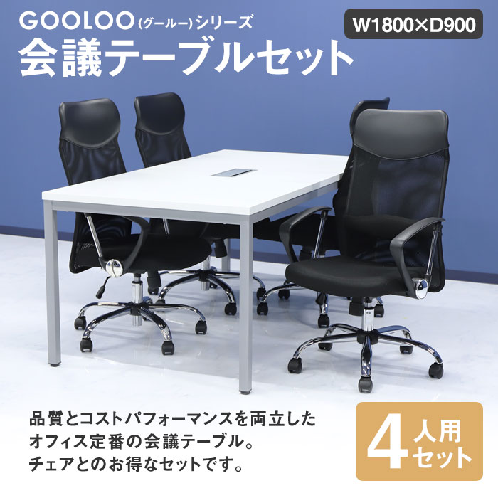 | 商品名 | GOOLOO 会議テーブル オフィスチェア【ハイバック 固定肘】4人用会議セット 幅1800mm |