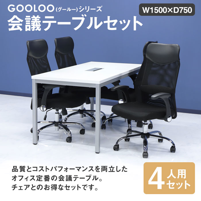 | 商品名 | GOOLOO 会議テーブル オフィスチェア【ハイバック 可動肘】4人用会議セット 幅1500mm |