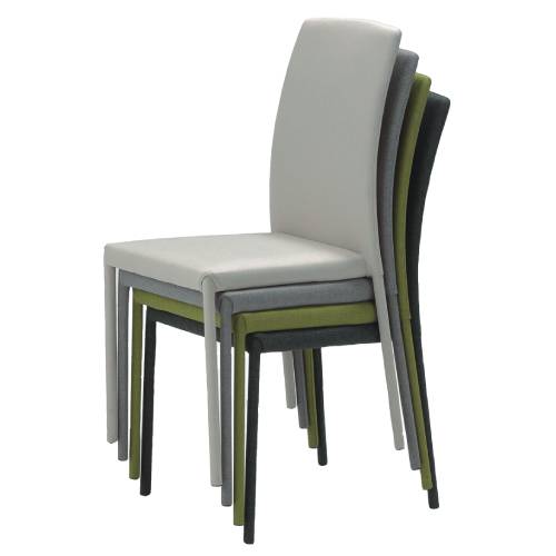 | シンプルなデザインのファブリックチェア。 内装のデザインやテーブルに合わせてお好きなカラーをお選びいただけます。 4脚までスタッキング(積み重ね)できるので、スリムに収納できます。 |
