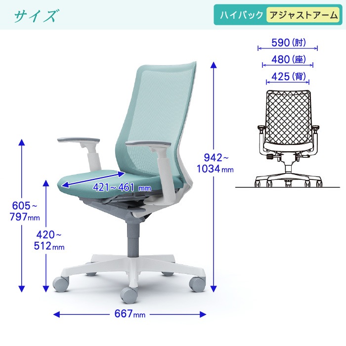 | サイズ | 幅590×奥行551~591×高さ942~1034(座面高420~512)mm |