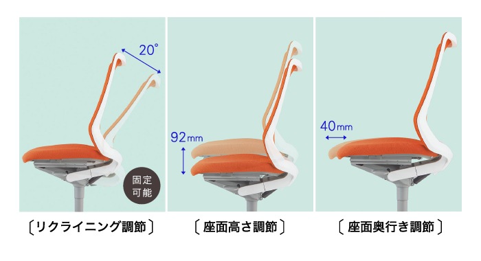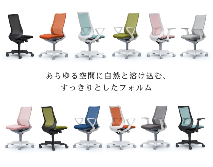 | カラー | ボディカラー:ブラックボディ、ホワイトボディ 背・座カラー:ライトグレー(FKA3)、ミディアムグレー(FKA2)、ブラック(FKA1)、ミディアムブルー(FKB3)、セージ(FKA6)、グリーン(FKB5)、オレンジレッド(FKA8)、ペールピンク(FKA7) |