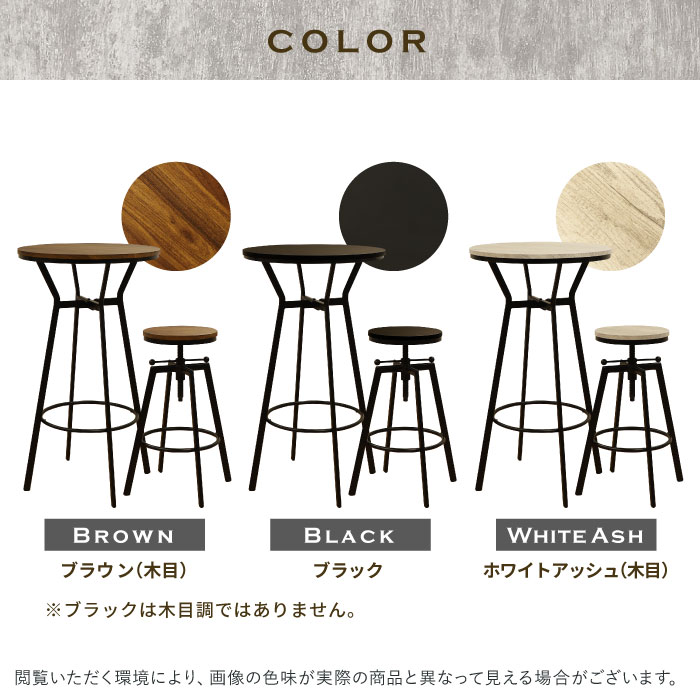 - ハイテーブル チェア セット 3点 丸 バーチェア ラウンドテーブル KINO-TS-2