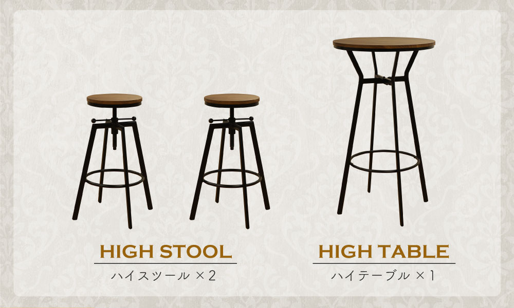 ハイテーブル チェア セット 3点 丸 バーチェア ラウンドテーブル KINO-TS-2