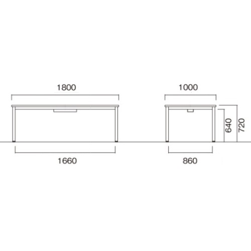 | サイズ | 幅1800×奥行1000×高さ720mm |