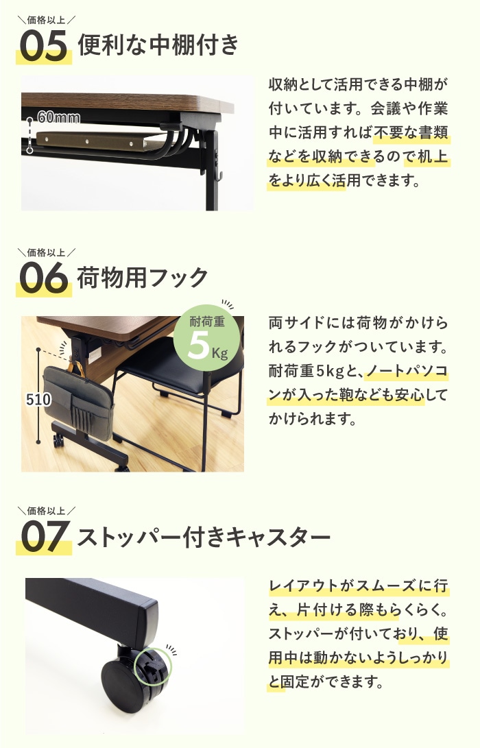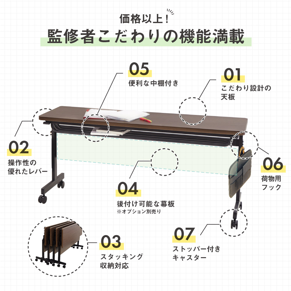 | スタッキングテーブル 会議用テーブル ミーティングテーブル 長テーブル キャスター付き スタックテーブル 折り畳みテーブル 跳ね上げ式 跳ね上げテーブル 机 講義用 塾 会議 フォールディングテーブル 天板跳ね上げ フラップ式 フラップテーブル 角型 折りたたみ ワクチン 接種 会場 大規模接種 会議テーブル 会議机 長机 棚付き イベント 公民館 学校 教育施設 役所 | |