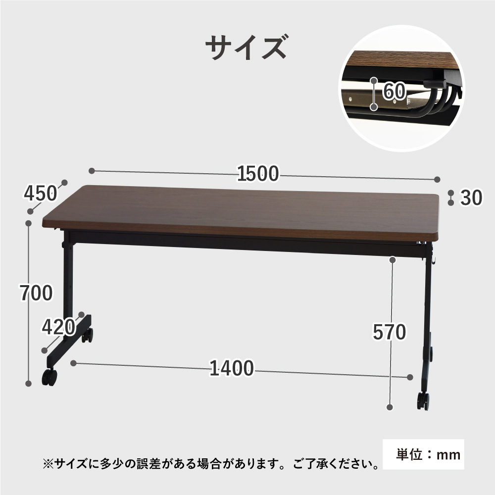 - フォールディングテーブル 幅1500×奥行450mm 会議用テーブル 折りたたみ GLF-1545