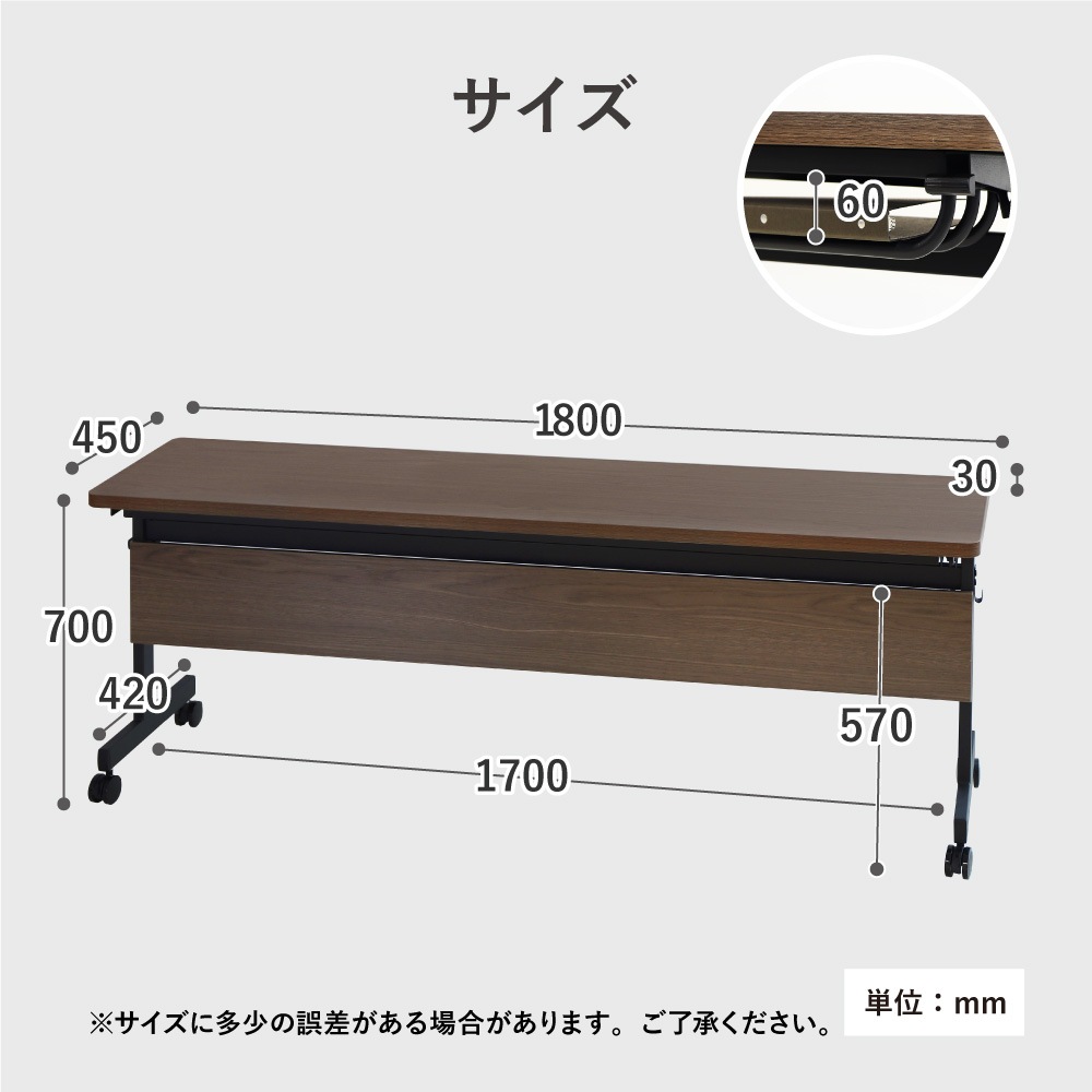 - フォールディングテーブル 幅1800×奥行450mm 会議用テーブル 折りたたみ 幕板付き GLF-1845M