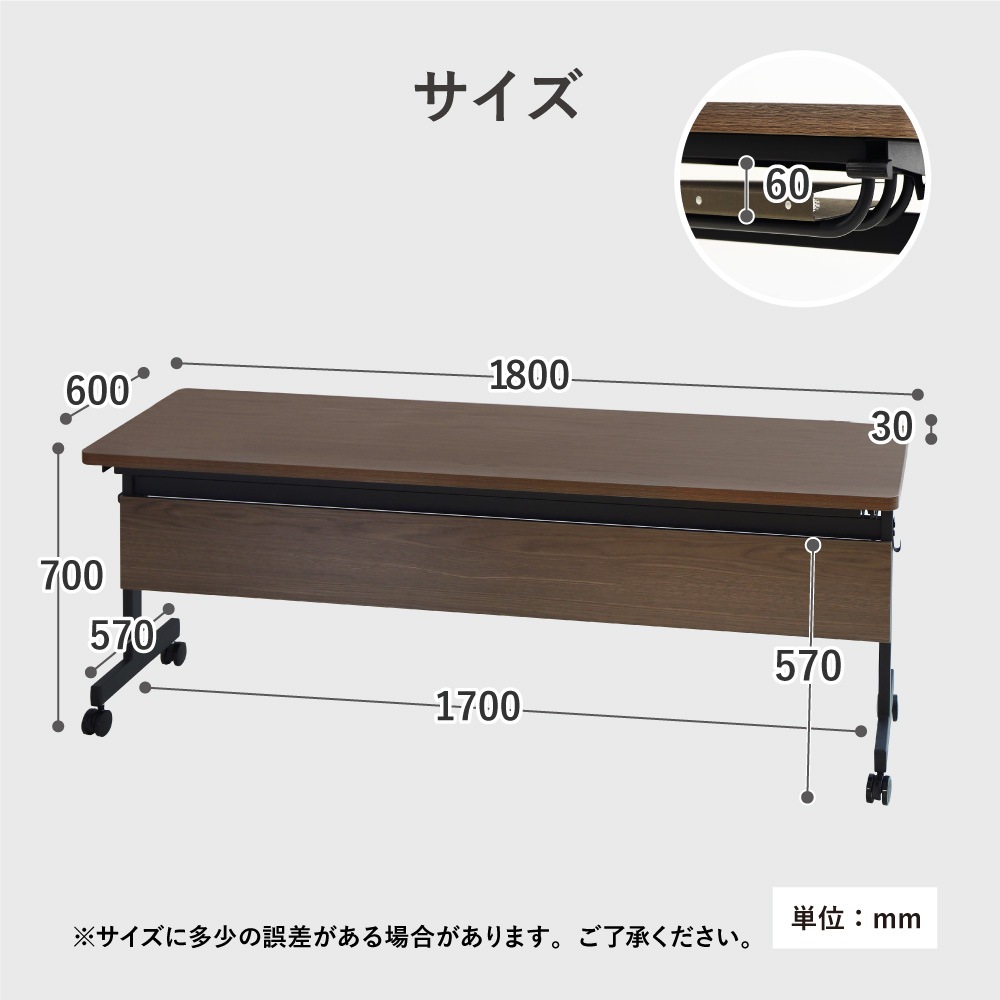 【天板・幕板】 天板:メラミン樹脂化粧板、エッジ:PVC貼り 【脚】 スチール(粉体塗装) 【キャスター】 ナイロン 幕板付き |