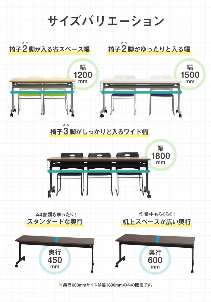 フォールディングテーブル 会議用テーブル 幅1800×奥行600mm 幕板付き GLF-1860M