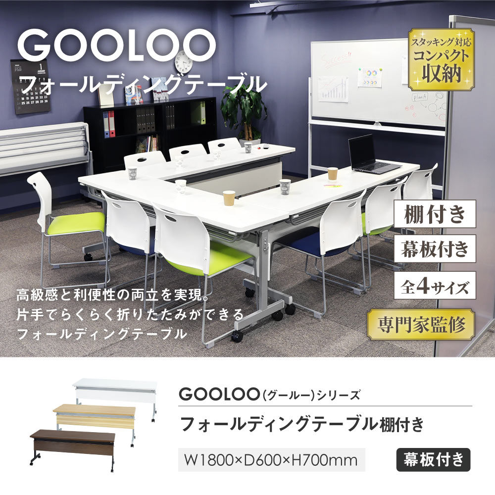 | 商品名 | GOOLOO フォールディングテーブル棚付き 幅1800mm 奥行600mm 幕板付き |