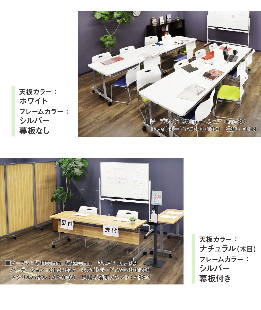 - フォールディングテーブル 会議用テーブル 幅1800×奥行600mm 幕板付き GLF-1860M