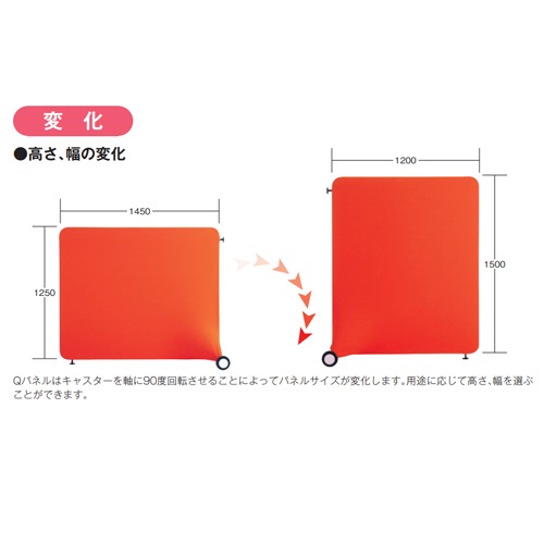 | サイズが変わる、用途が変わる! モバイルオフィスに最適のムービングパネル&チェアのQシリーズ! Qパネル&チェアは回転させることによって、サイズや用途が変化する新しいタイプのオフィス家具です。 デザインされた大口径キャスターによって滑らかな移動を可能にし、複雑なオフィス環境の変化に対応します。 |