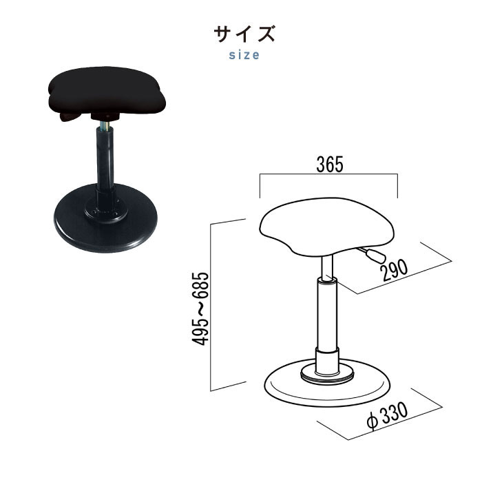 - スツール 幅330×奥行330mm バランススツール 座面昇降チェア ワークチェア TWS-190